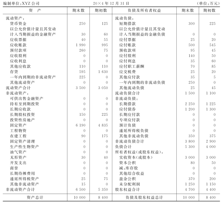 【例3-1】 为便于说明,本章各项财务比率的计算将主要以XYZ公司为例,该公司的资产负债表、利润表、现金流量表如表3-1、3-2、3-3所示。