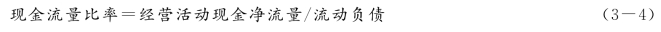 现金流量比率是指企业一定期间经营活动的现金净流量与流动负债的比率。现金流量比率反映企业在经营活动中获得现金偿还短期债务的能力。只有这一比率大于或等于1时,债权人的全部流动负债才有现金保障。其计算公式为: