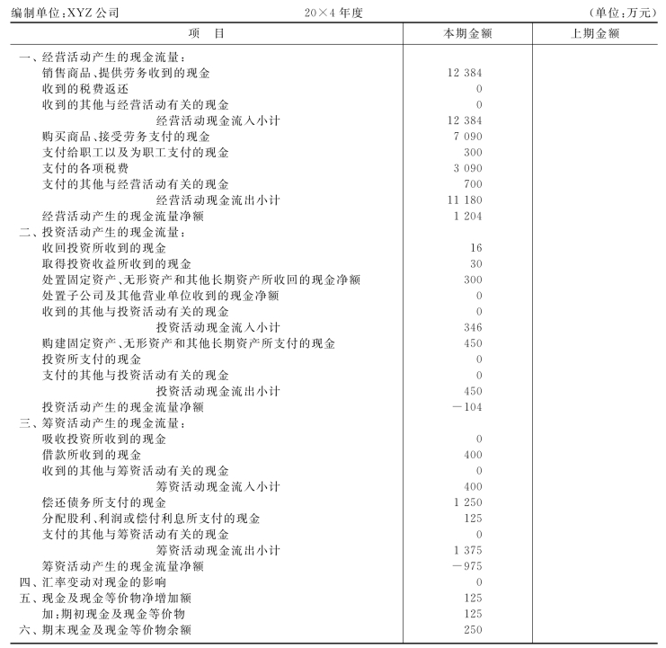 根据表3-1和3-3中的资料,XYZ公司20×4年年末的现金流量比率为:1 204/1 500=0.80。