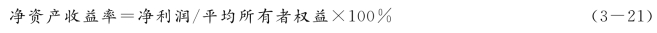 据表3-1和3-2中的资料,XYZ公司20×4年的净利润为680万元,年初和年末的所有者权益分别为4 400万元和4 700万元,则XYZ公司20×4年的净资产收益率为: