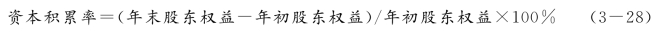 资本积累率又称为股东权益增长率,是某一年度内企业股东权益增加额与年初股东权益的比率,其计算公式为:
