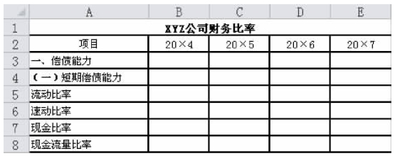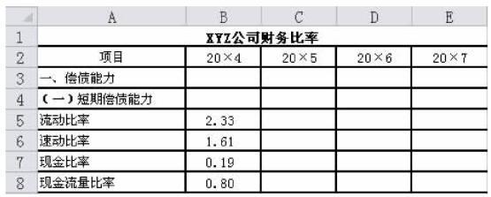 财务比率分析模型主要应用于财务比率分析,对应于本章的3.2节到3.5节的内容。这里仅以短期偿债能力指标为例来介绍财务比率分析模型的构建及应用,其他各项指标的财务比率分析模型的构建和应用基本相同。