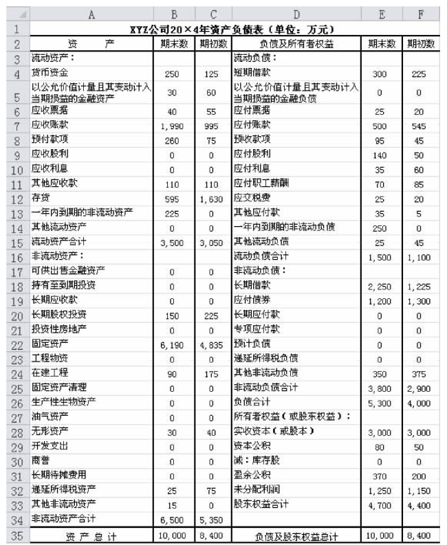 图3-6 XYZ公司20×4年短期偿债能力指标计算结果