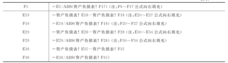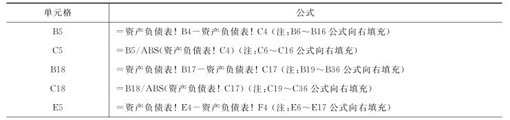在“资产负债表环比分析模型”工作表的相应单元格中输入如表3-8所示的公式进行计算。