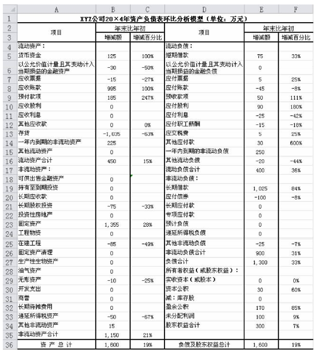 图3-10 XYZ公司20×4年资产负债表环比分析结果