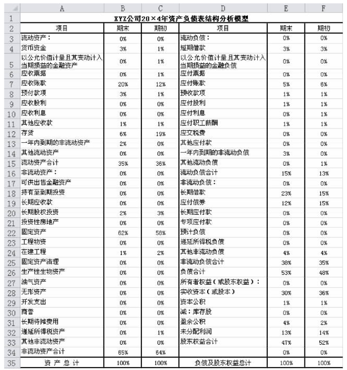 图3-11 XYZ公司20×4年资产负债表结构分析模型