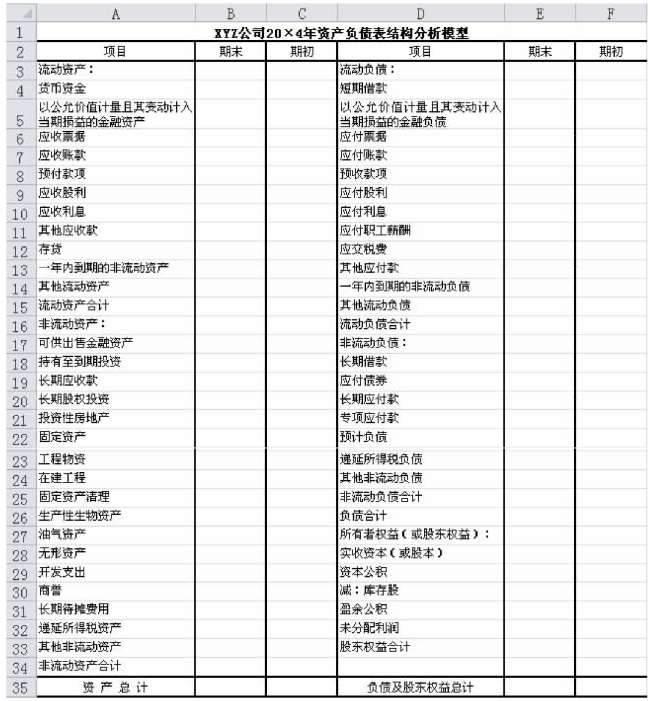 在“财务分析模型.xls”工作簿中插入名为“资产负债表结构分析模型”的工作表,如图3-11所示。