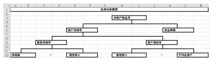在“财务分析模型.xls”工作簿中插入一个名为“杜邦分析模型”的工作表,格式设计如图3-16所示。