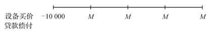 考虑例4-7,公司也可以通过4年期的银行贷款直接购买设备。令M 表示贷款的每年偿还金额,公司的现金流如图4-1所示。