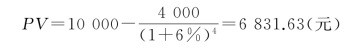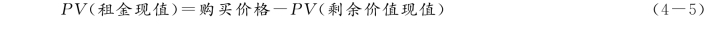 【例4-7】 假设公司需要增添一台设备,市场价值为10 000元,公司准备租赁使用4年,4年后该设备的剩余价值为4 000元,市场利率为6%,每年复利一次。公司在4年中为使用该资产,每年应该支付多少租金?