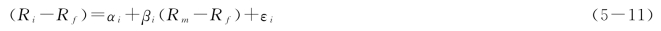 式中,Ri为证券报酬率;αi为回归截距项,称为阿尔法系数,根据资本资产定价模型,阿尔法系数不应该显著地不为0;εi为回归残差;其他符号的含义同前。