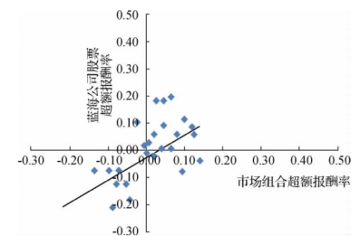 图5-1 蓝海公司股票和上证综指的月报酬率散点图