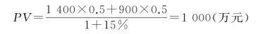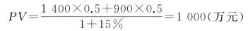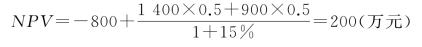 某公司有一投资机会,初始投资800万元,预期第二年产生的现金流为1 400万元或900万元,取决于经济形势的假设,两种情形的概率相等。假设无风险报酬率为5%,投资者在此基础上要求一定的风险溢价,合理的风险溢价为10%,现金流情况如表5-6所示。