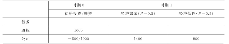 即公司价值为1 000万元,其中800万元支付投资成本,剩余200万元为利润。