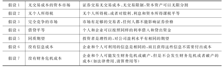 一价定律表明杠杆不影响公司的总价值,仅仅改变现金流在债权人和股东之间的分配,而没有改变公司整体现金流。Modigliani和Miller(简称为MM)证明,在完美资本市场中,上述结论具有一般性。完美资本市场假设如表5-8所示。