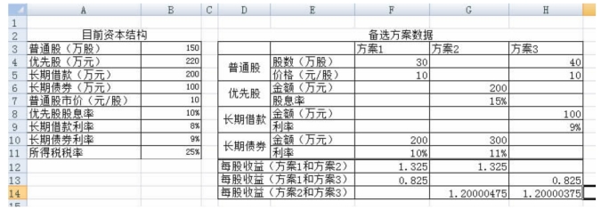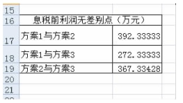 每股收益无差别点分析法是通过比较每个方案不同的每股收益水平,结合预测的息税前利润水平,从而作出融资决策。这可以通过Excel的规划求解功能来实现。