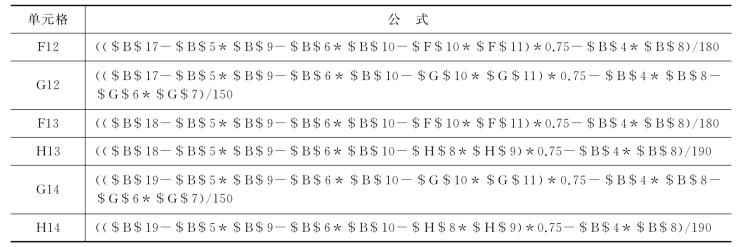 第三步:F12、G12、F13、H13、G14和H14单元格中输入的公式如表5-11所示。
