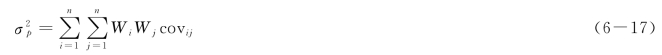 式中,WiWj为第i种、第j 种证券在证券投资组合中所占的比重;covij为第i 种证券和第j种证券的协方差;ρij为第i种证券和第j 种证券的相关系数。