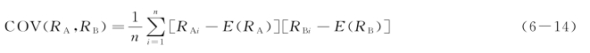 式中,RA为证券A 的收益率;RB为证券B的收益率;E(RA)为证券A 的收益率的期望值;E(RB)为证券B的收益率的期望值;n为证券种类数;COV(RA,RB)为A、B 两种证券收益率的协方差。