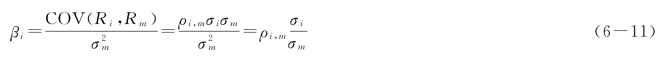式中,ρi,m为第i项资产收益率与市场组合收益率的相关系数;σi为第i项资产收益率的标准差,表示该资产的风险大小;σm为市场组合收益率的标准差,表示市场组合的风险大小;COV(Ri,Rm)为第i项资产收益率与市场组合收益率的协方差,等于三个指标的乘积ρi,mσiσm。