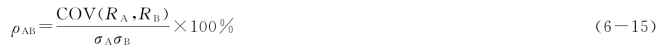其中,COV(RA,RB)=ρABσAσB。相关系数ρAB的取值范围介于-1与+1之间:当取值为-1时,表示证券A和B的收益变动完全负相关;当取值为+1时,表示证券A和B的收益变动完全正相关;当取值为0时,表示证券A和B 的收益变动完全不相关;当0<ρAB<1时,表示证券A和B的收益正相关;当-1<ρAB<0时,表示证券A和B的收益负相关。