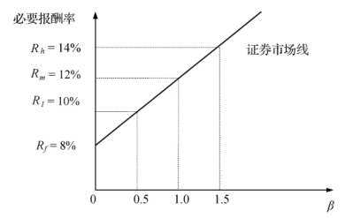 证券市场线适用于单个证券和证券投资组合(不论它是否已经有效地分散了风险),它测度的是证券(或证券投资组合)每单位市场风险(β系数)的超额收益。