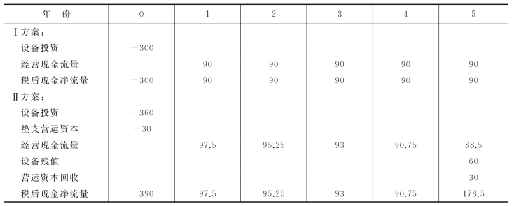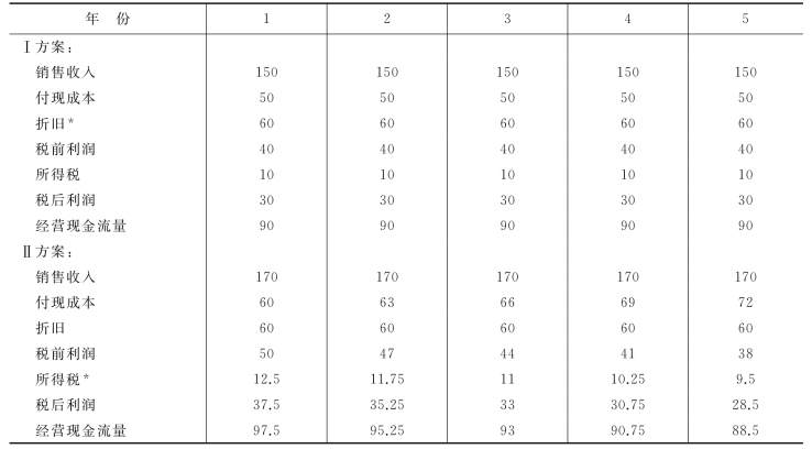 注:Ⅰ方案的年折旧额=300÷5=60(万元)。