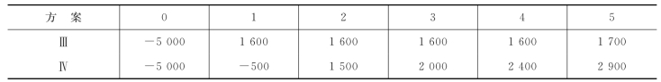 表7-4 Ⅲ、Ⅳ投资方案的现金净流量表 单位:万元