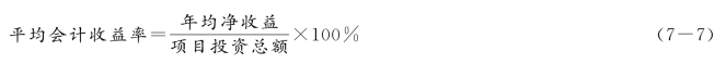 【例7-4】 以例7-1的资料为例计算平均会计收益率指标。