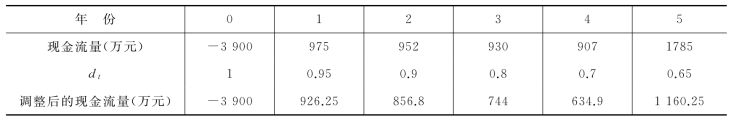 利用肯定当量法对该项目中各年的现金流量进行调整,调整结果如表7-8中最后一行数字所示。则