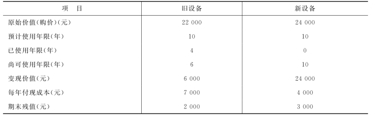 8.某企业有一旧设备,生产使用部门提出更新要求,技术人员及财务人员提供的相关数据见表7-23。