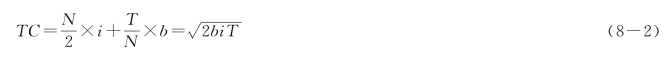 上式是一个以N为自变量、以TC为因变量的函数。对该函数求极值,可以采用求一阶导数的方法求出令总成本TC 最小时的N 值,如下所示