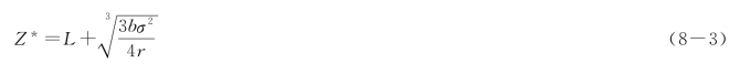 【例8-2】 樱兰公司目前的证券交易成本为每次500元,有价证券的日均收益率为0.06%。根据公司管理人员承受风险的倾向以及每日现金最低需求量,财务部确定的每日最低现金需要量为200元。根据最近4年的现金余额情况,测算出日现金余额标准差为5 000元。樱兰公司的最佳现金持有量和持有量上限分别为多少?