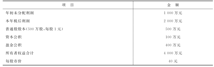 表9-1 发放股票股利前的股东权益情况 (单位:元)