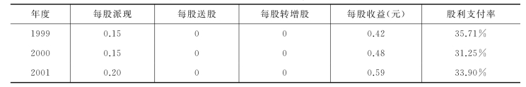 1.第一阶段。1999—2001年间,万科的股利政策如表9-5所示。
