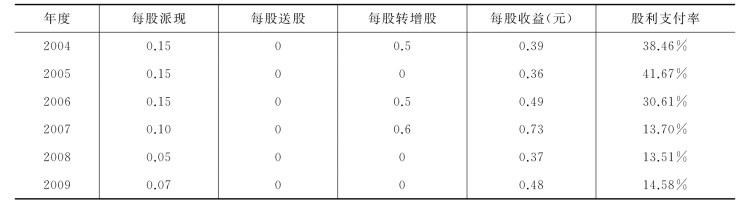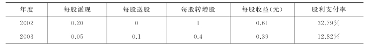 表9-6 万科2002—2009年股利分配表