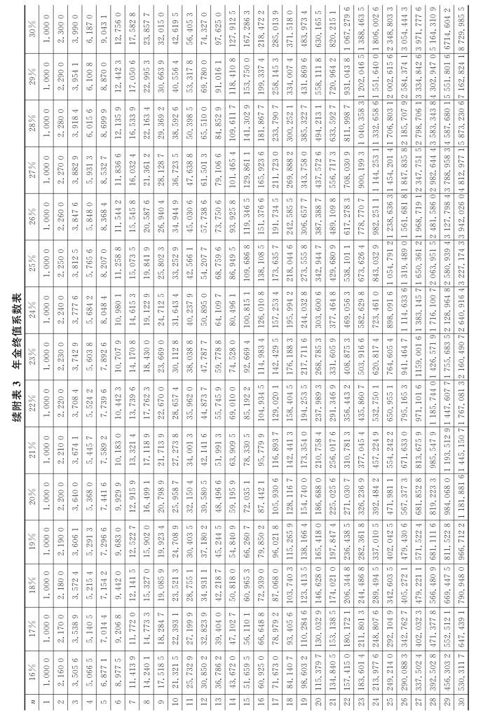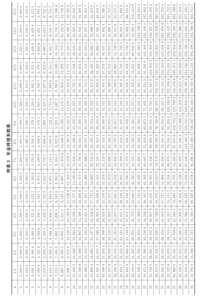 附表3 年金终值系数表