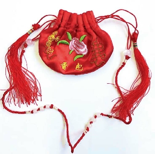 布艺作品“香囊”(图1— 6),属于刺绣作品。民间布艺多用一些隐晦的、象征性的图形,以花卉、虫鸟、植物、动物等表达人们祈盼吉祥、趋吉避凶的美好愿望。在不断传承的过程中,也形成了一套谐音吉祥图案和具有象征性、寓意性的吉祥符号。比如,蝎子、蜈蚣、蛇、蜥蜴、蟾蜍等组合构成的图,民间称之为“五毒”。在小孩过端午节的香袋上绣“五毒”图案,寓意以毒攻毒。