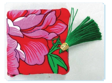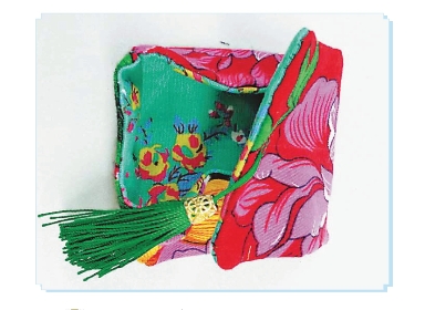 10.图3—24:钉上四合扣,装上绿色流苏。古色古香的小零钱包便完成了。