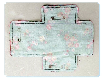 5.图3—19:用别针或夹子固定后按画线缝合,留一条边作返口。