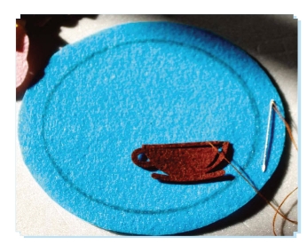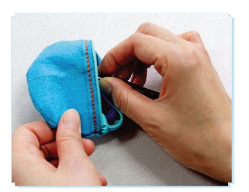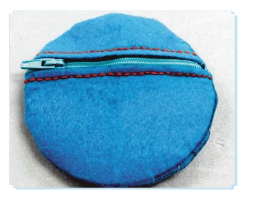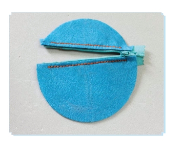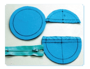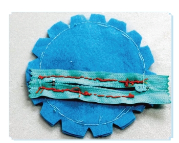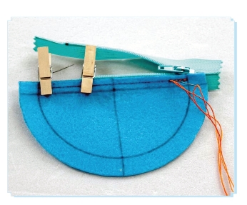 8.图3—33:拉链处翻至正面,用镊子整理圆形包包,使弧线圆顺。