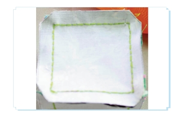 5.图3—11:把最后一块正方形布缝到立方体空着的四条边上,在缝最后一边时先留下一半不要缝合作为返口。
