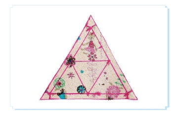 1.图3—2:裁剪一块边长为14厘米的等边三角形棉布片,连接三角形三条边的中点,并放出1厘米缝头。