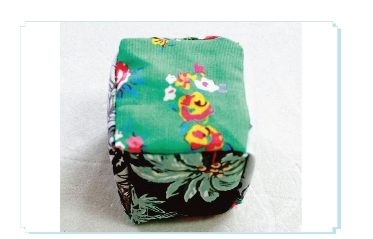 6.图3—12:把缝好的立方体从返口处翻过来,这样就把毛边的部分翻到里面了。