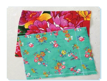 2.图3—16:根据纸样裁剪大小一样的表布跟里布,侧边缝头为0.5厘米。
