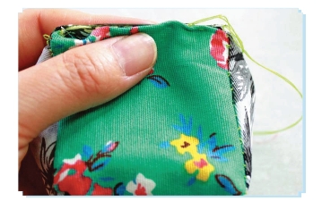 5.图3—6:最后制成一个三角锥形的立体沙包。留出返口,返口处采用藏针缝合。
