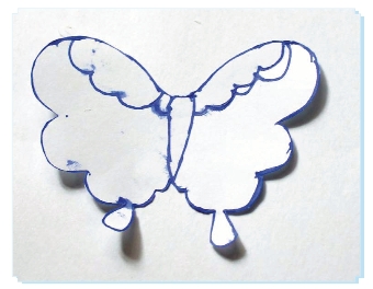 2.图4—29:在不织布上裁剪蝴蝶的前片和后片。