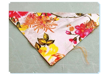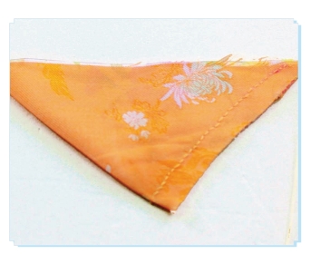 3.图4—13:翻转过来,折合成三角形,缝合线在中央。