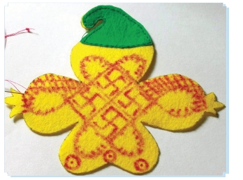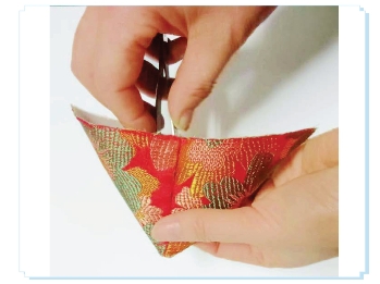 1.图4—33:根据万代盘长香袋的纸型剪下不织布料。