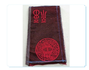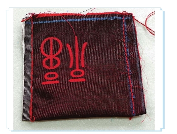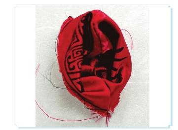 1.图4—2:裁剪一块8厘米×16厘米的写有福字的长方形织锦缎布片。